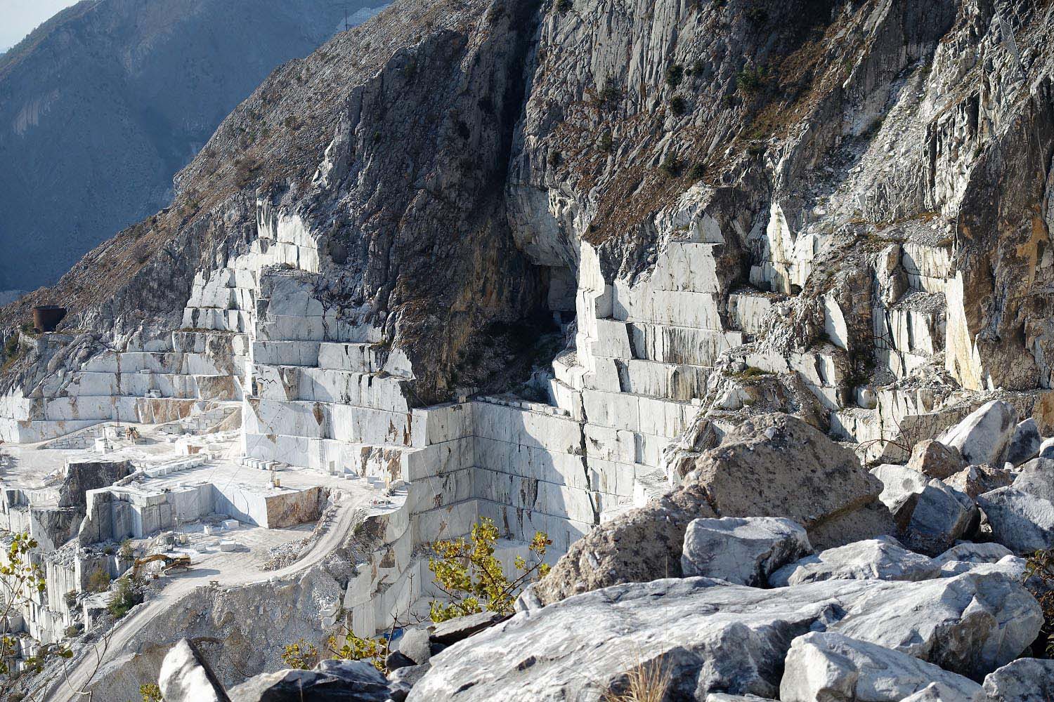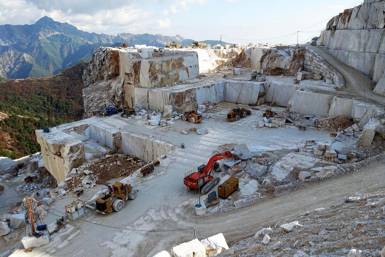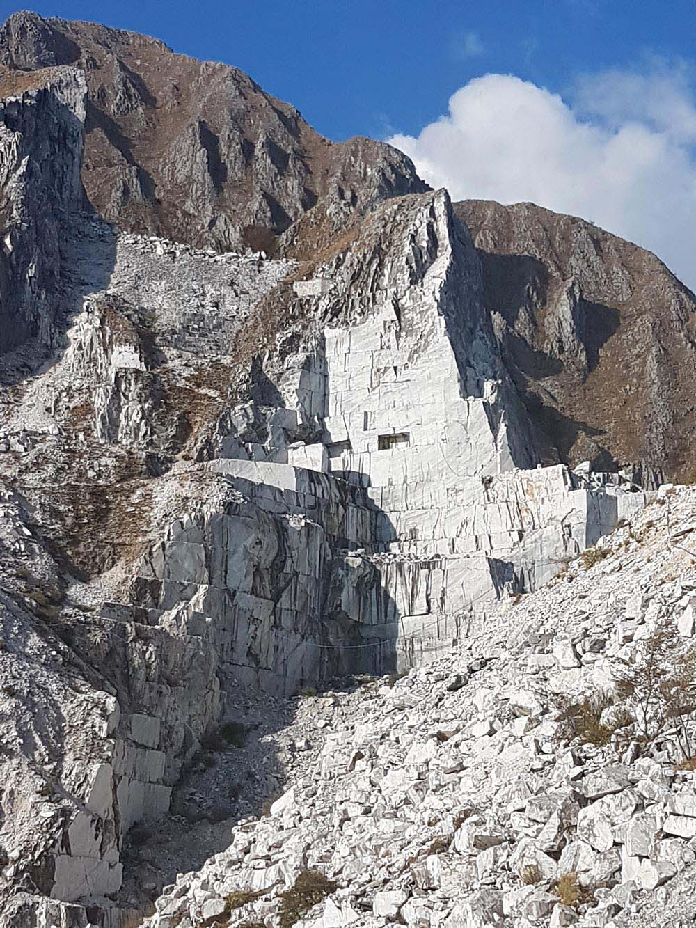 There are about 600 quarries above the town between the marvelous mountain peaks, about half of which are currently being used. They produce more marble than any other field in the word. Heavy trucks transport the giant blocks to the marble manufacturing companies, that are located around the city and the harbor of Carrara. From this place continues the well-known material its journey to the whole world.