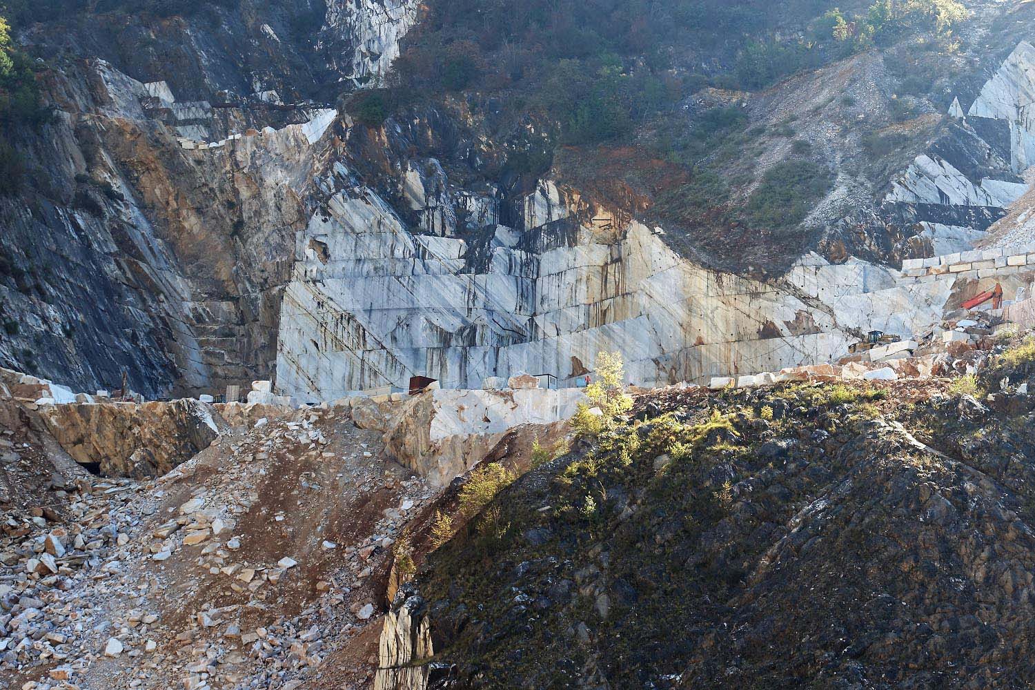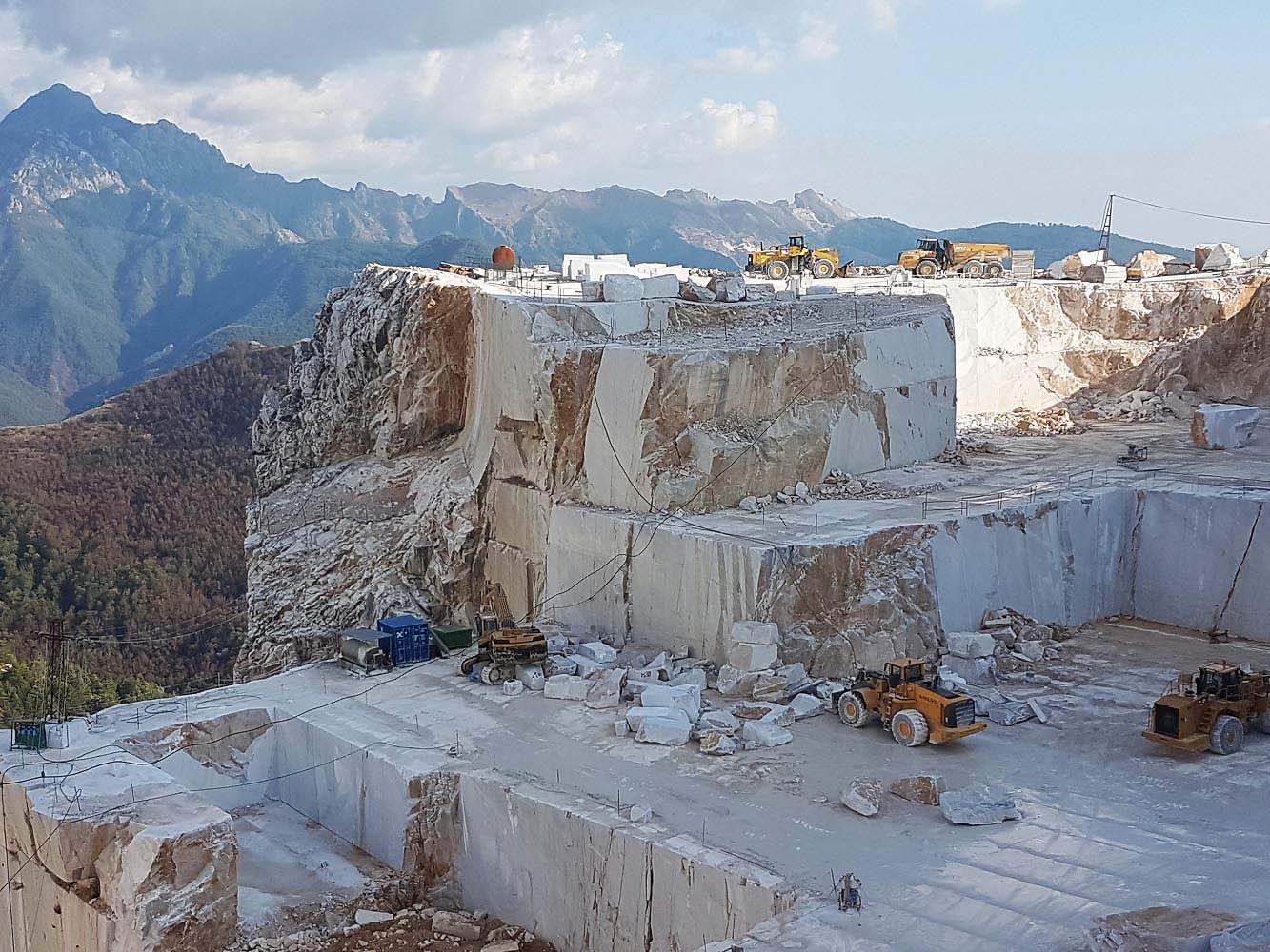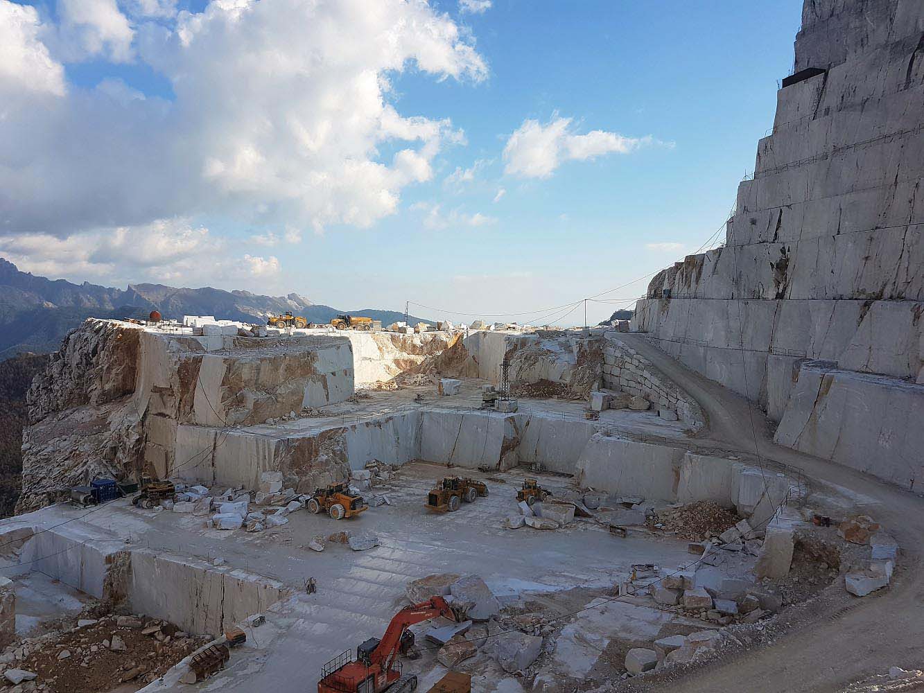 There are about 600 quarries above the town between the marvelous mountain peaks, about half of which are currently being used. They produce more marble than any other field in the word. Heavy trucks transport the giant blocks to the marble manufacturing companies, that are located around the city and the harbor of Carrara. From this place continues the well-known material its journey to the whole world.
