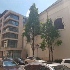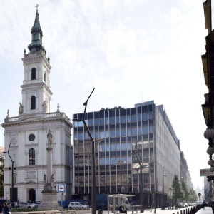 The site that housed the building almost encircles the adjoining St. Anne’s Church on three sides, creating a serious dilemma for the architects: how to create a modern building which forms an architectural unit with the 300-year-old St. Anne’s Church. The former building of the telephone exchange center had a modern glass-metal facade solution of its time ('70s) and was built tightly on the neighboring church.