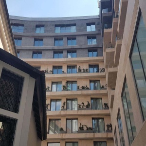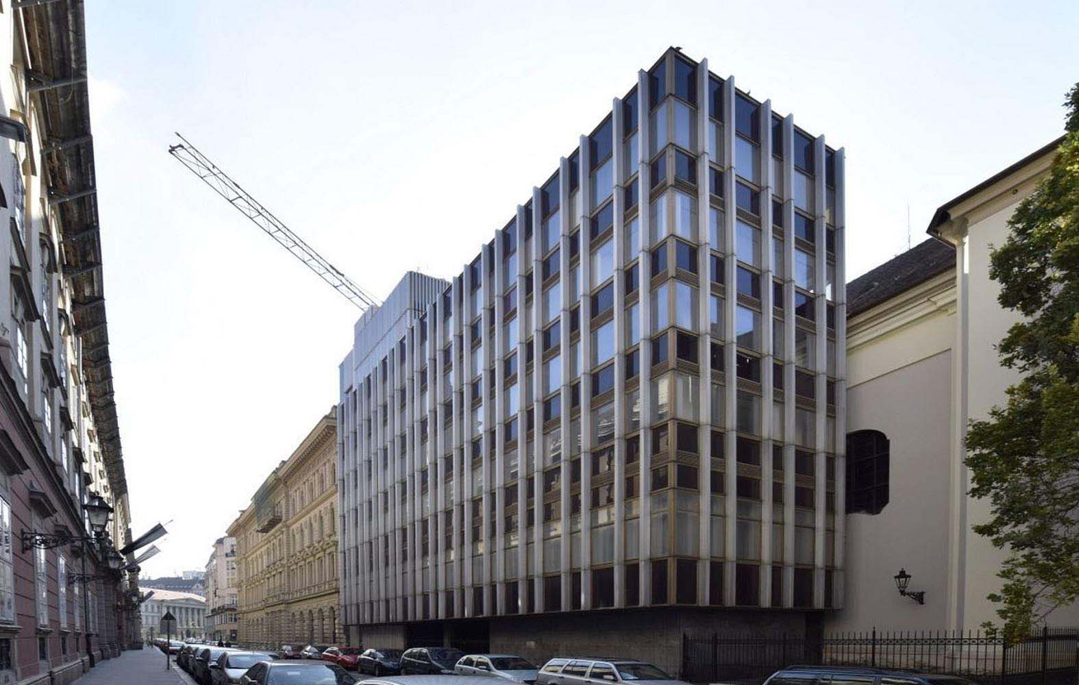 The Emerald Residence hotel and apartment house, located on Szervita Square in Budapest, has been completed. The building used to serve as the home of the Downtown Telephone Exchange Center (built 1973-1976), on the grounds of the former Servite monastery that once belonged to the neighbouring St. Anne’s Church. The new hotel building has been created with a partial retention of the structure of the former telephone exchange center and a complete transformation of the exterior and interior appearance.