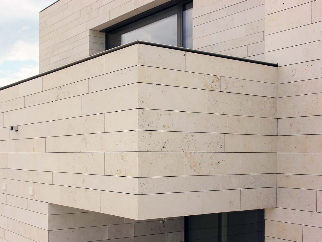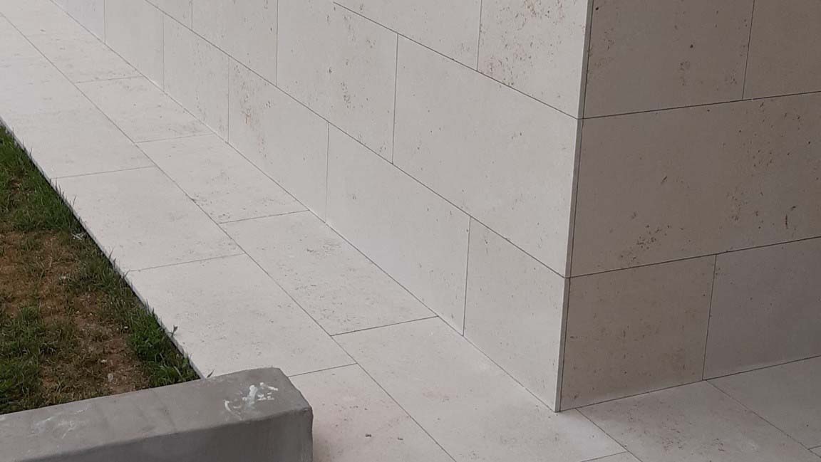 The appearance of the Jura Castello limestone is natural yet elegant, so it fits equally into a modern or traditional architectural environment. It can be used well with wooden coverings, but also in combination with metal or glass architectural elements.