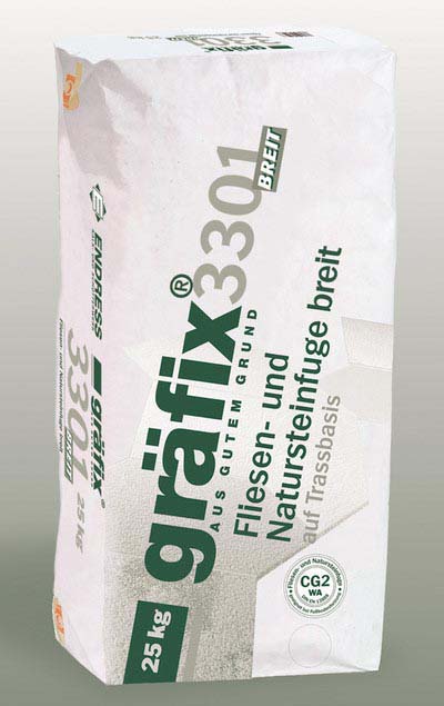 Trass-cement tile grout for natural stones and ceramic tiles with wide grout
